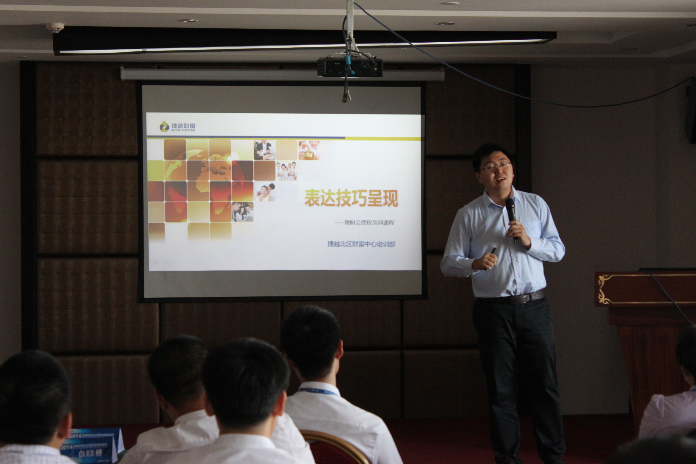 随后,北区培训部经理钱宏博为学员带来《理财会主讲人讲授要点》课程,钱经理与学员分享了自身多年的主讲经验,并串讲了三套不同层面的理财会灯片。使学员们进一步开阔了视野,拓宽了工作思路,从而对未来的工作充满信心。