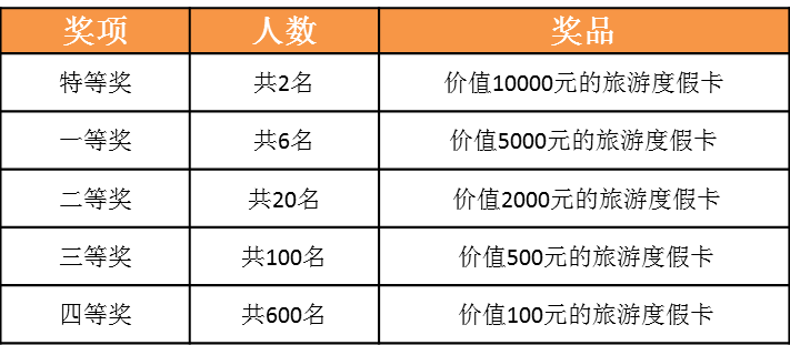我们将在成功报名的客户中分两次抽取,每次均产生特等奖1名、一等奖3名、二等奖10名、三等奖50名、四等奖300名。 (第一次抽奖中奖的客户将不参与第二次抽奖)