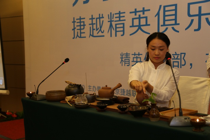 精英们说“总部安排的茶艺交流不仅体现了捷越的创新精神,同时也展示了捷越的优秀文化修养。随着社会大众生活质量的提高,大家开始追求最高层次的视觉与精神享受,茶艺享受就是其中一部分。通过此次培训不仅了解了茶艺,也积累了自己的茶艺谈资,在未来展业中这是必不可少的知识储备。而今茶艺馆已成为特殊的‘再展业’地点,茶艺馆环境清静优雅,可以与客户进行更近距离的交流。在这样清幽的环境中,与客户喝喝茶,聊聊天,谈谈茶文化,展示美学茶艺,不知不觉就会跟客户成为生活中的好朋友,同时也促进了销售,达到了事半功倍的效果。”