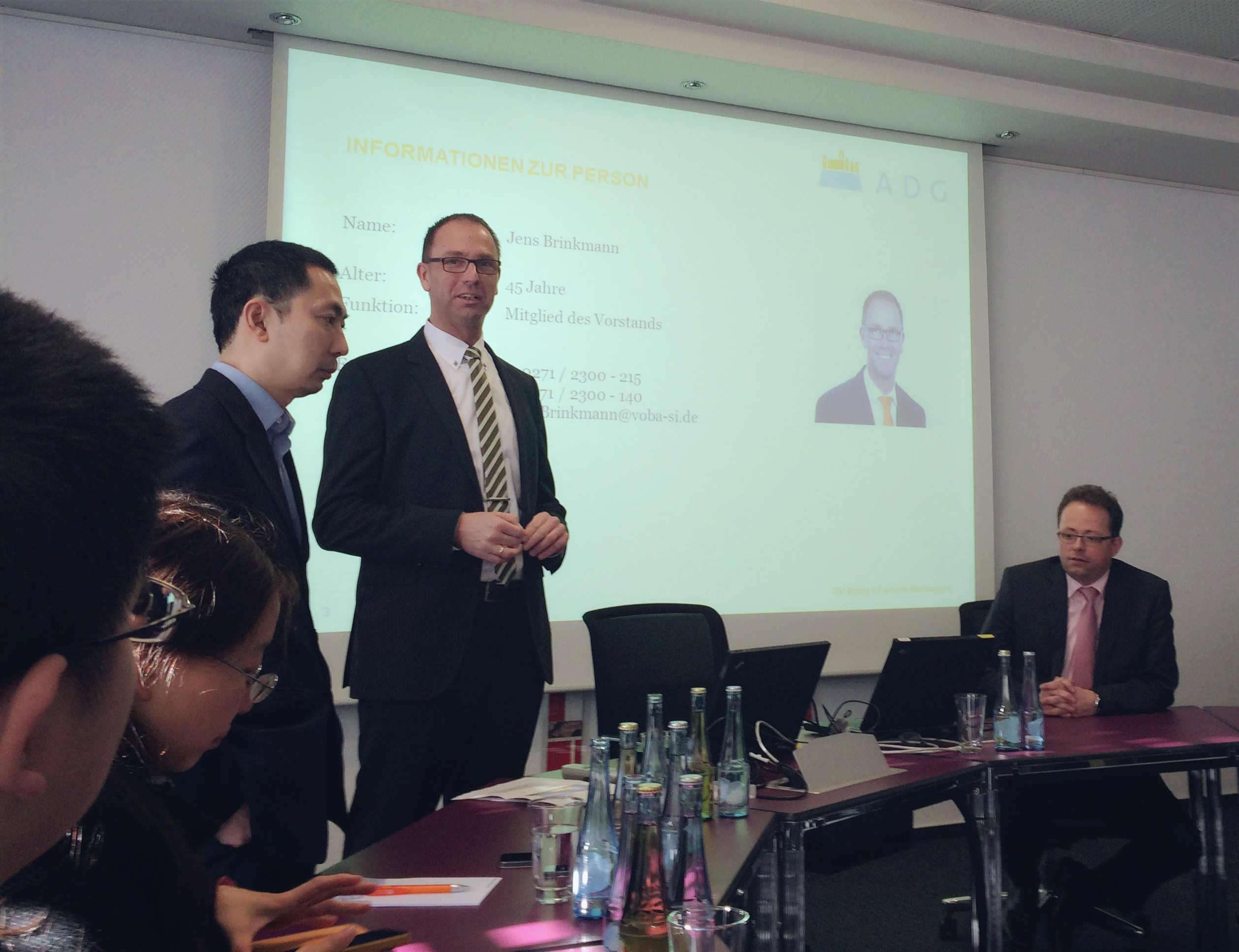 在德期间,中国考察团抵达德国合作银行培训中心ADG,开始为期四天的学习活动。在此期间代表团进一步了解德国金融体系概况、合作银行经营模式特点、信贷管理流程、降低成本的“信贷工厂”运作方式,以及德国P2P机构的发展经验,并访问了德国代表性的家族式合作社和中型企业。