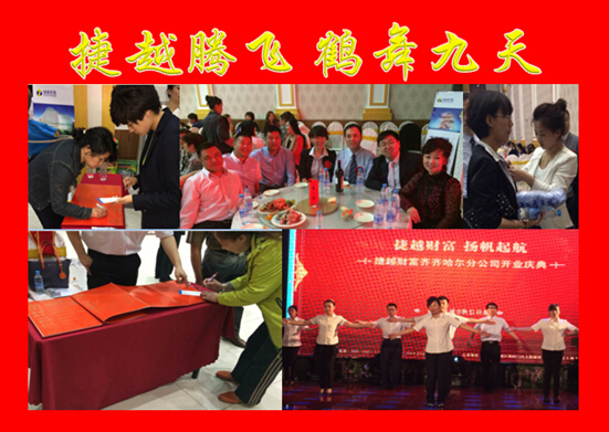 正如捷越北区财富齐齐哈尔分公司马凯丰总在祝酒辞中说所说:“捷越财富是打造齐齐哈尔人生活品质的平台,是实现财富有效管理的平台。”捷越北区财富齐齐哈尔分公司有信心、有决心、有能力为每一位捷越客户提供优质的金融理财服务。齐分人将踏着坚实的脚步,在总公司及北区财富中心的正确领导下,不断前行,不断进取,打造捷越齐分品牌,创造更大价值。