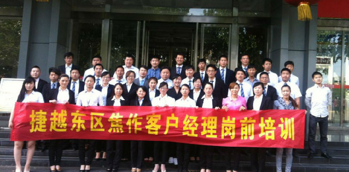 2014年4月中旬,捷越东区焦作营业部正式开业。为了更好的调动员工的工作热情和积极性,提高客户经理、客服专员的整体服务水平,5月10日至5月11日,捷越东区焦作营业部针对新到岗的客户经理、客服专员,实施了一系列的岗前培训工作。
