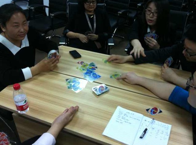 与传统课堂“老师讲、学生听”的方式不同,现在的“英语沙龙”培训课堂采用了分组教学模式,并加入“娱乐学习”的游戏式培训元素。在课堂上采用模拟演练,充分调动学员的团队合作能力,发挥团队配合性,如设置场景之后的所有细节,包括数字、颜色等内容都要通过英文表达,并通过积分来评定游戏奖励,使教学变得生动灵活、别有风趣。在教学中,讲师作为学员成长的引导者、促进者,从而使英语教学,真正做到了让学员动起来,让学员讲出来,充分发挥学生自主性。