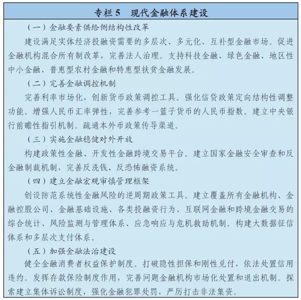 加强金融宏观审慎管理制度建设,加强统筹协调,改革并完善适应现代金融市场发展的金融监管框架,明确监管职责和风险防范处置责任,构建货币政策与审慎管理相协调的金融管理体制。统筹监管系统重要性金融机构、金融控股公司和重要金融基础设施,统筹金融业综合统计,强化综合监管和功能监管。完善中央与地方金融管理体制。健全符合我国国情和国际标准的监管规则,建立针对各类投融资行为的功能监管和切实保护金融消费者合法权益的行为监管框架,实现金融风险监管全覆盖。完善国有金融资本管理制度。加强外汇储备经营管理,优化外汇储备运用。有效运用和发展金融风险管理工具,健全监测预警、压力测试、评估处置和市场稳定机制,防止发生系统性、区域性金融风险。